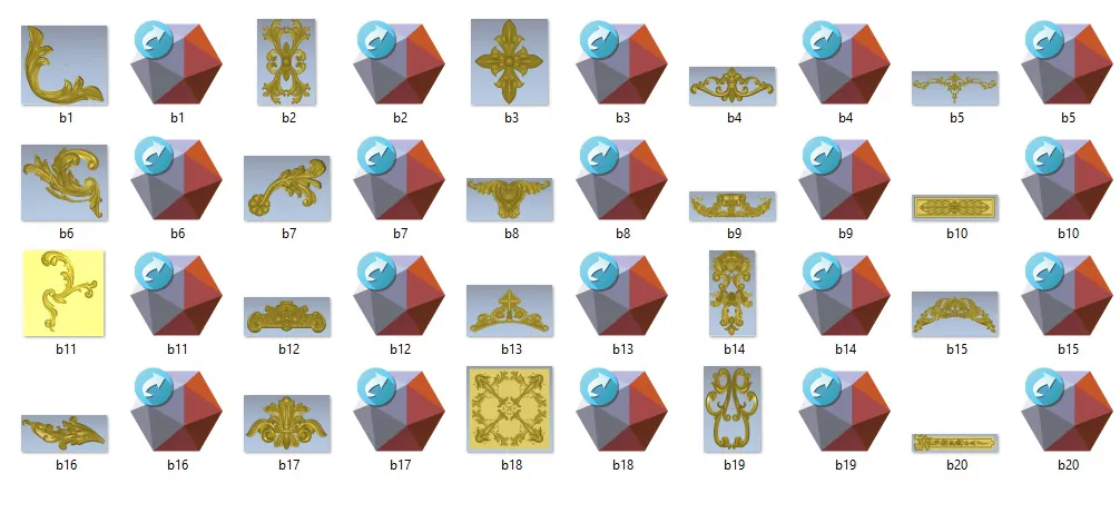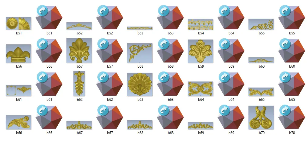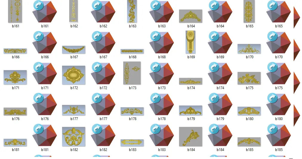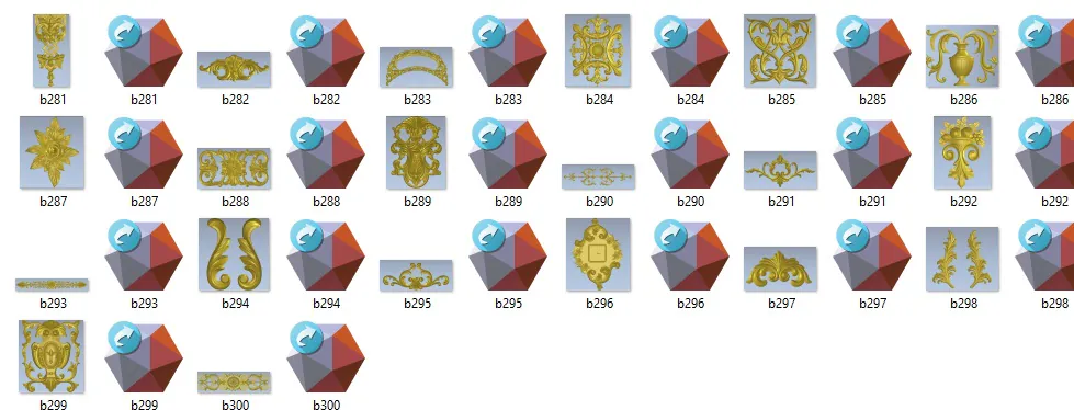 Elevate el nivel de tus creaciones con nuestra colección de 300 diseños ornamentales dorados, cuidadosamente optimizados para CNC, grabado láser y decoración clásica. Cada diseño ha sido elaborado pensando en la perfecta combinación entre estética y funcionalidad, logrando resultados espectaculares y de alta calidad. Con esta colección, puedes añadir un toque refinado a muebles, arquitectura, artesanía y otros proyectos decorativos.