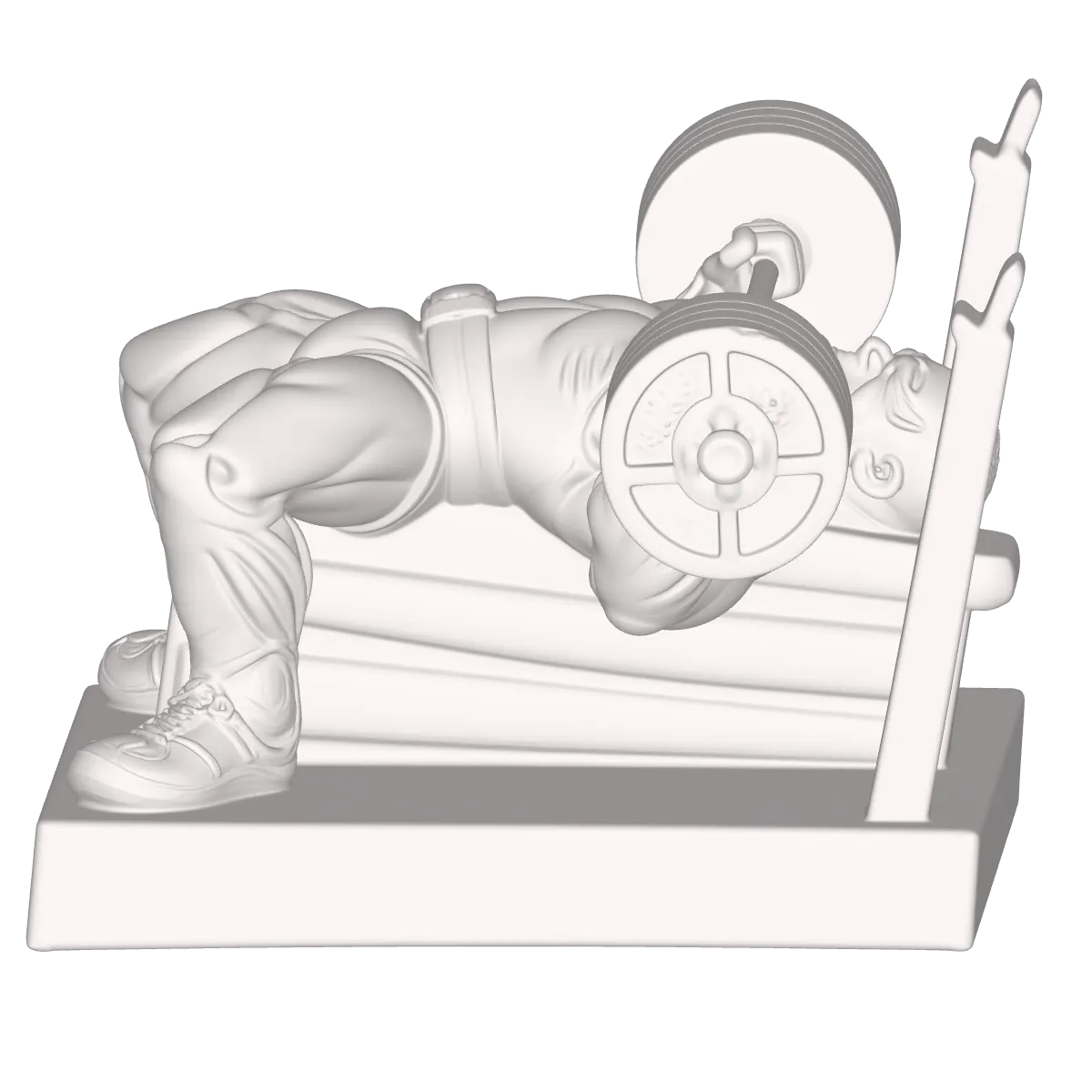 Fabricada con materiales de alta calidad, esta escultura combina durabilidad con detalles meticulosos. Cada línea muscular y posición corporal ha sido creada con cuidado para reflejar la realidad de un bench press. La barra cargada añade un elemento auténtico que resonará con cualquier entusiasta del levantamiento de pesas. Su acabado pulido y dimensionalidad hacen que esta obra de arte sea una pieza atractiva y duradera para exhibir en gimnasios personales, oficinas, o incluso salas de estar.